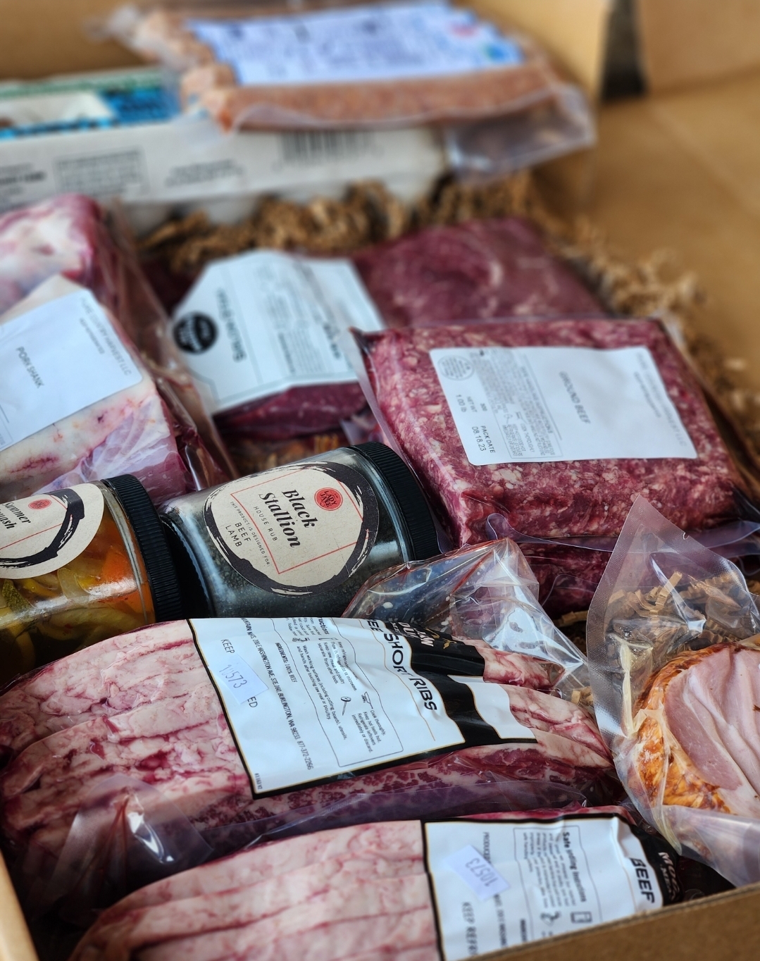 A rotating selection of different meats, sauces, ferments, provisions, marinades, and recipe cards on how best to prepare delicious dinners. Choose from: